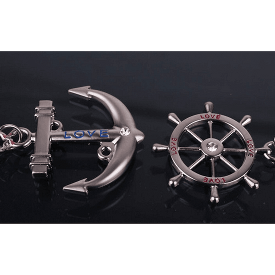 4EVER Romantic Stainless Alloy Metal Silver Nautical Steering Wheel Anchor & Love Boat Rudder Helm Couple Keychain