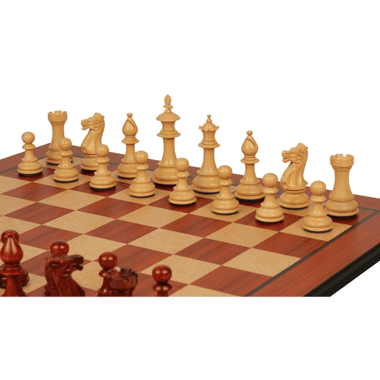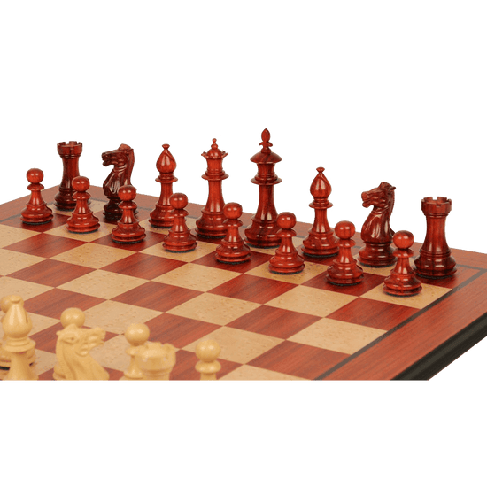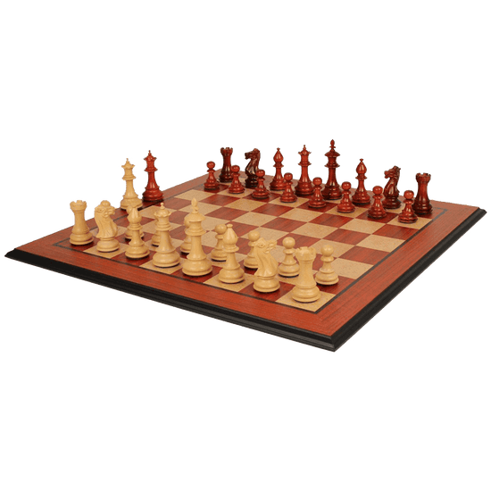 The Chess Store Royal Staunton Wood Chess Set African Padauk & Boxwood Chess Pieces with Padauk & Bird's Eye Maple Molded Chess Board